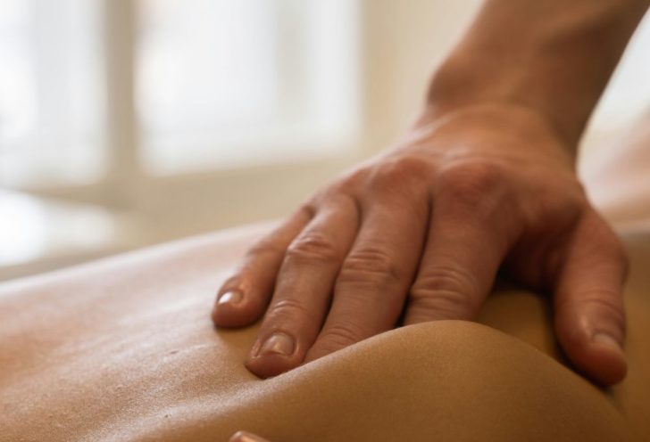 2. Du lägger dig bekvämt inbäddad medan terapeuten inleder med lätta öppningar vid lymfnoderna.